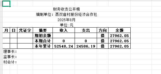 阿城镇西双庙村2025年8月份账目收支明细表