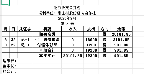 阿城镇常庄村2025年8月份账目收支明细表