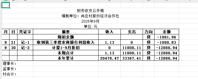 阿城镇肖庄村2025年9月份账目收支明细表