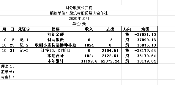 阿城镇殷坑村2025年10月份账目收支明细表