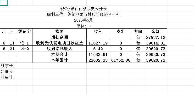 阳谷县金斗营镇莲花池五村资金公开明细表2025.06
