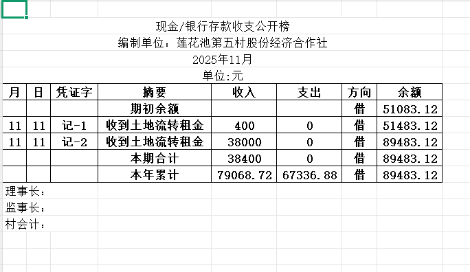 阳谷县金斗营镇莲花池五村资金公开明细表2025.11