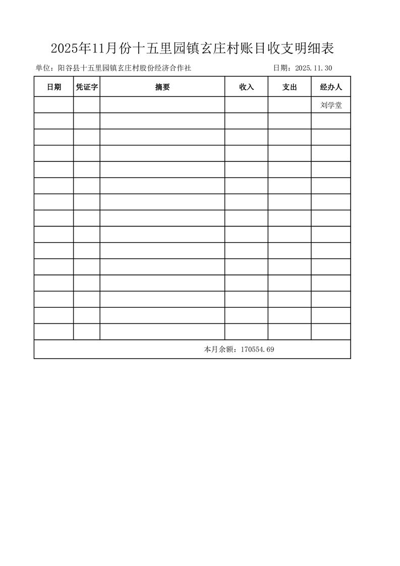 2025年11月份十五里园镇玄庄村账目收支明细表