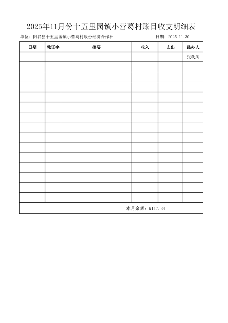 2025年11月份十五里园镇小营葛村账目收支明细表