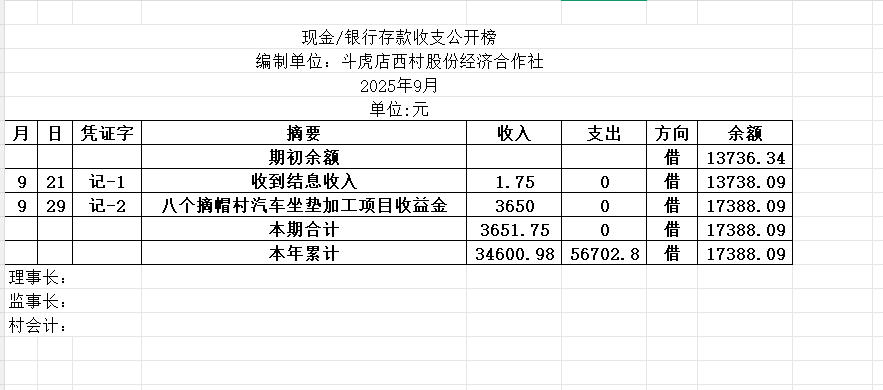 阳谷县金斗营镇斗西村资金公开明细表2025.09