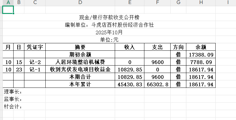 阳谷县金斗营镇斗西村资金公开明细表2025.10