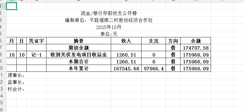 阳谷县金斗营镇子南二村资金公开明细表2025.10