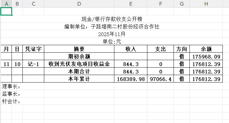 阳谷县金斗营镇子南二村资金公开明细表2025.11