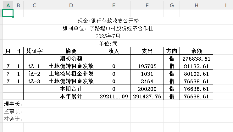 阳谷县金斗营镇子中村资金公开明细表2025.07