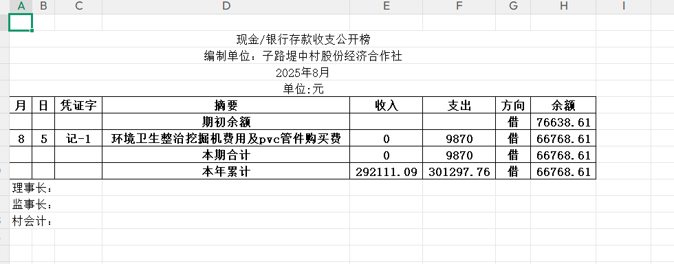 阳谷县金斗营镇子中村资金公开明细表2025.08