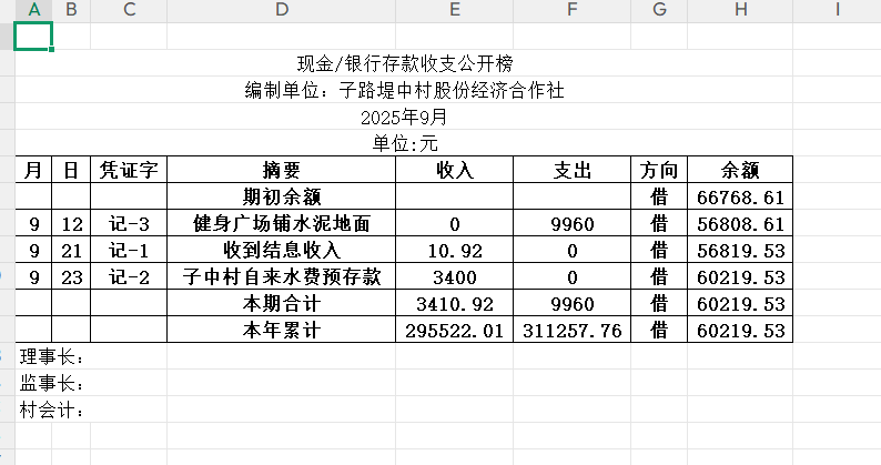 阳谷县金斗营镇子中村资金公开明细表2025.09