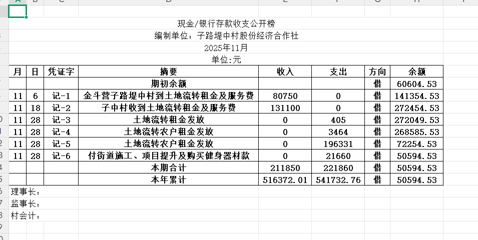 阳谷县金斗营镇子中村资金公开明细表2025.11
