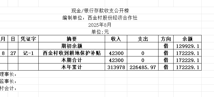 阳谷县金斗营镇西金村资金公开明细表2025.08