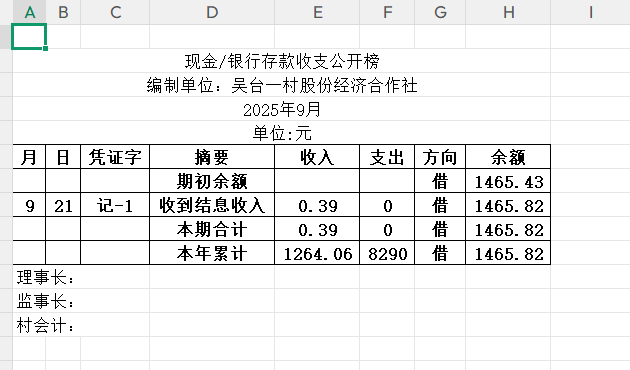 阳谷县金斗营镇吴台一村资金公开明细表25.09
