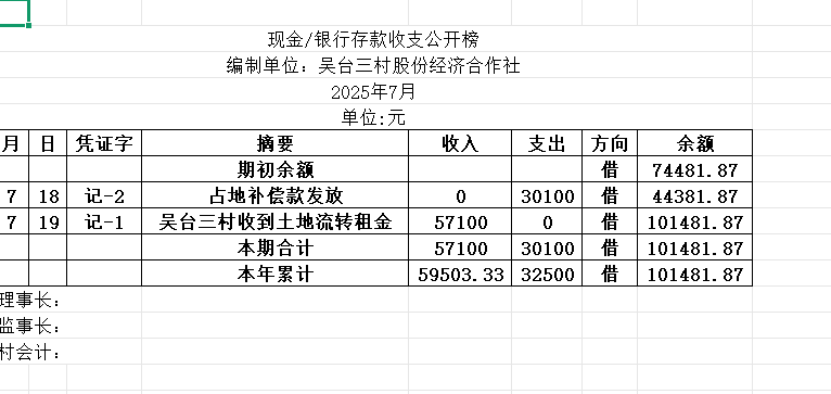 阳谷县金斗营镇吴台三村资金公开明细表2025.07
