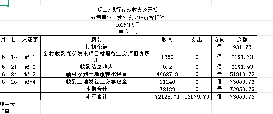 阳谷县金斗营镇新村资金公开明细表25.06