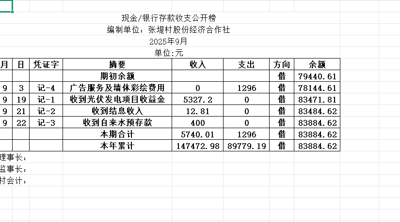 阳谷县金斗营镇张堤村资金公开明细表25.09