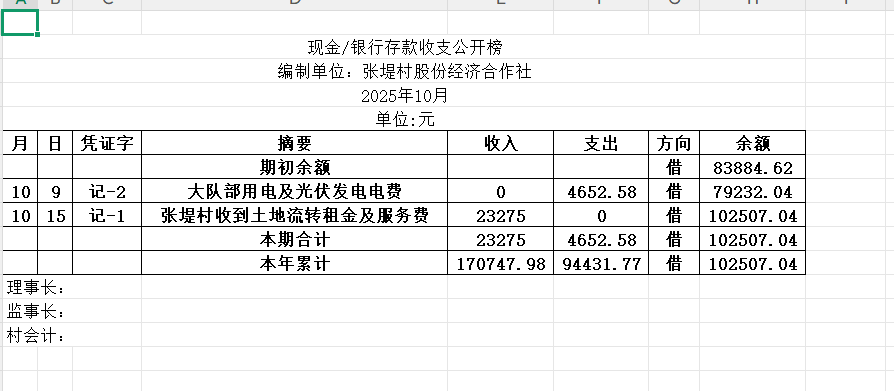 阳谷县金斗营镇张堤村资金公开明细表25.10