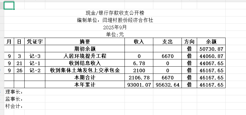 阳谷县金斗营镇闫堤村资金公开明细表25.09