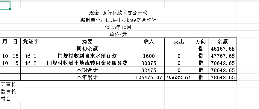 阳谷县金斗营镇闫堤村资金公开明细表25.10