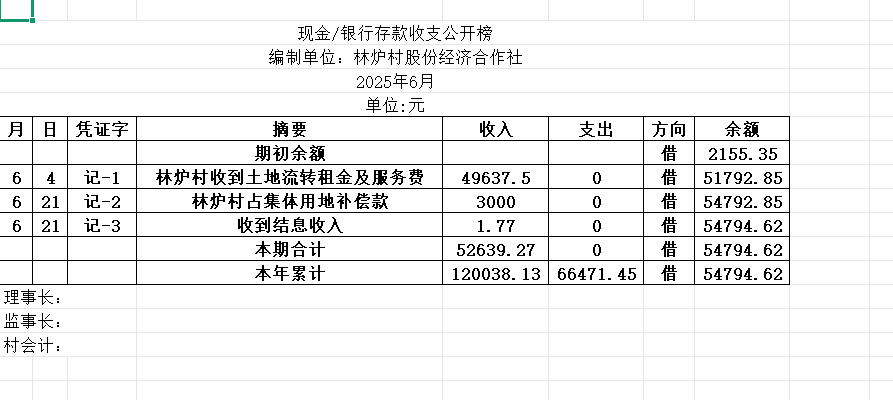 阳谷县金斗营镇林炉村资金公开明细表25.06