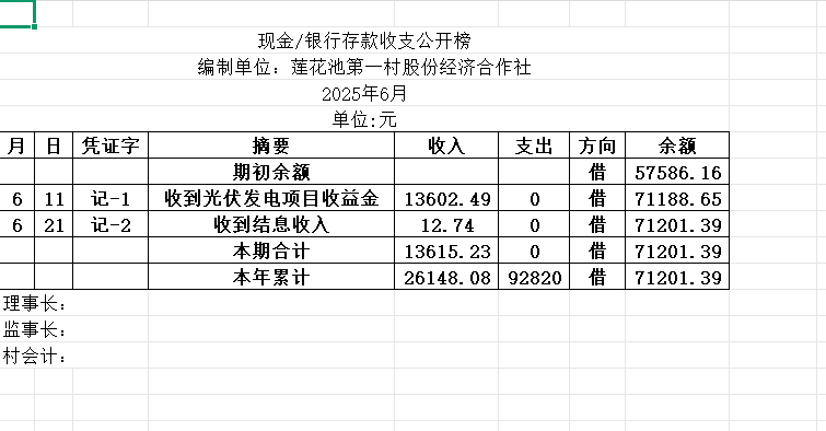 阳谷县金斗营镇莲花池一村资金公开明细表2025.06
