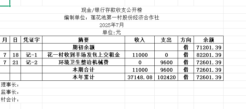 阳谷县金斗营镇莲花池一村资金公开明细表2025.07