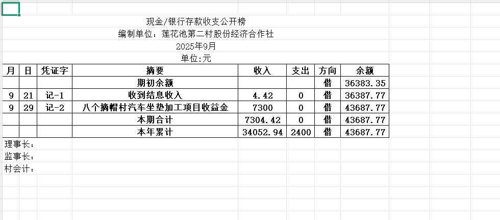 阳谷县金斗营镇莲花池二村资金公开明细2025.09