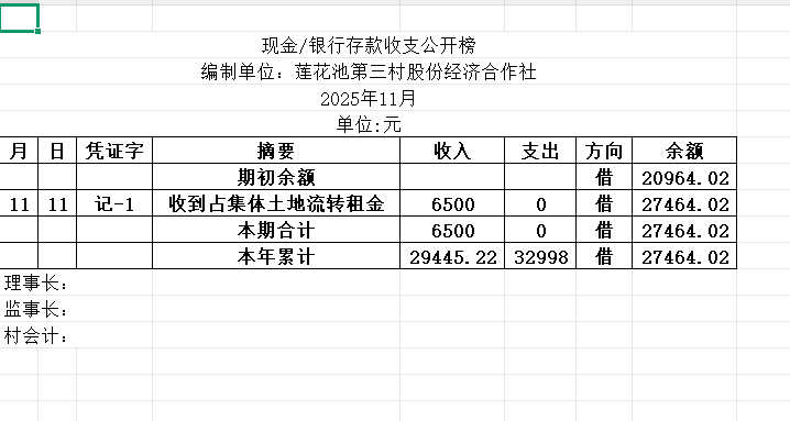 阳谷县金斗营镇莲花池三村资金公开明细表25.11