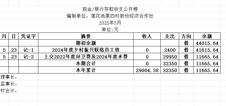 阳谷县金斗营镇莲花池四村资金公开明细表2025.05