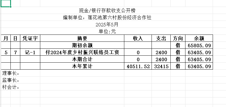 阳谷县金斗营镇莲花池六村资金公开明细表2025.05
