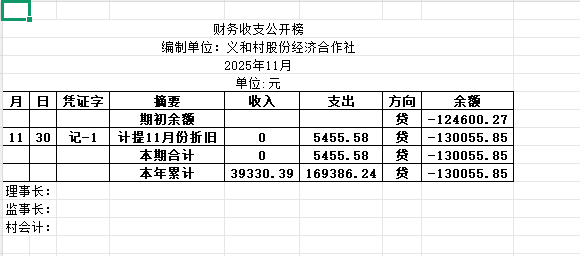 阿城镇义和村2025年11月份账目收支明细表
