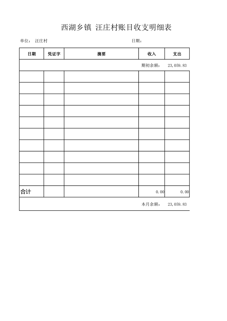 2025年5月份西湖镇汪庄村账目收支情况表