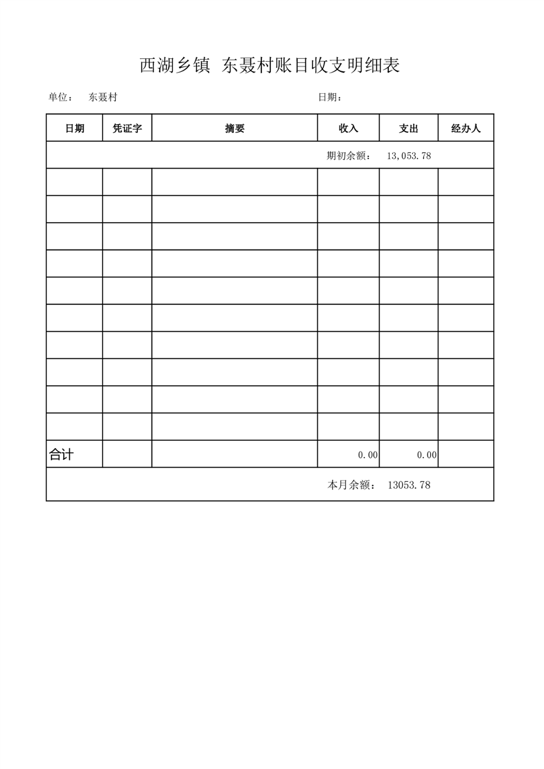 2025年5月份西湖镇东聂村账目收支情况表