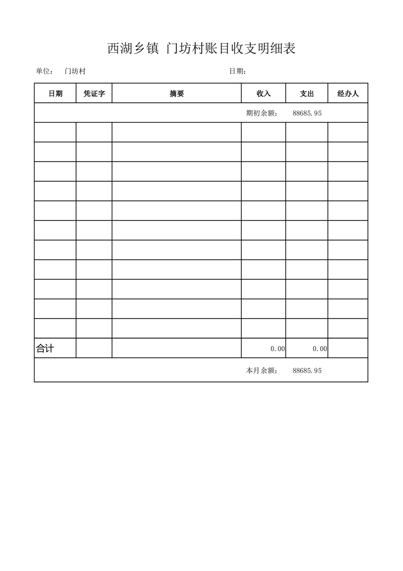 2025年5月份西湖镇门坊村账目收支情况表