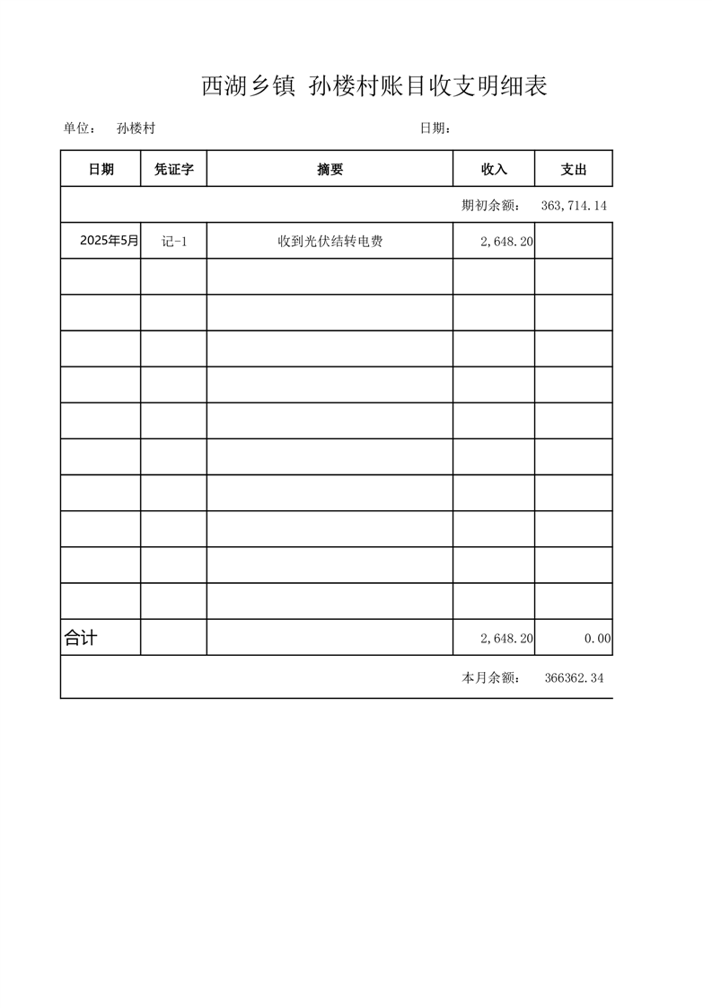 2025年5月份西湖镇孙楼村账目收支情况表