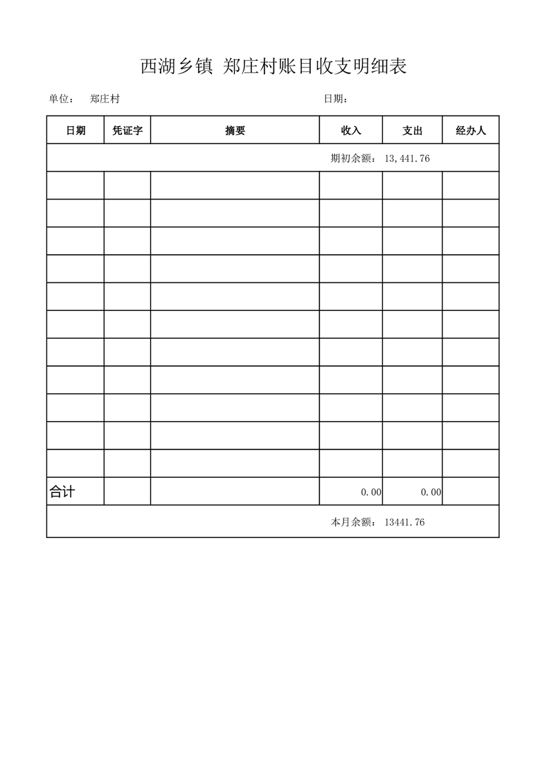 2025年7月份西湖镇郑庄村账目收支情况表