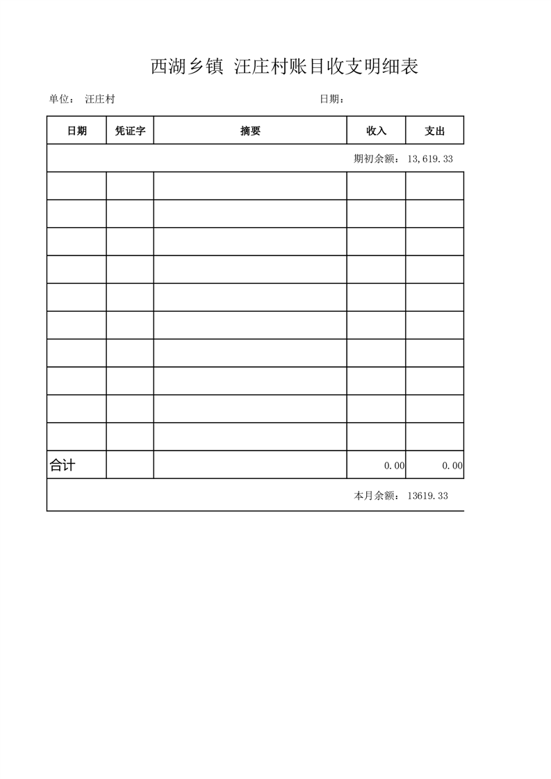 2025年10月份西湖镇汪庄村账目收支情况表