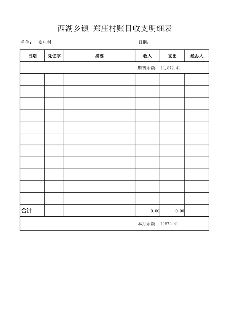 2025年10月份西湖镇郑庄村账目收支情况表