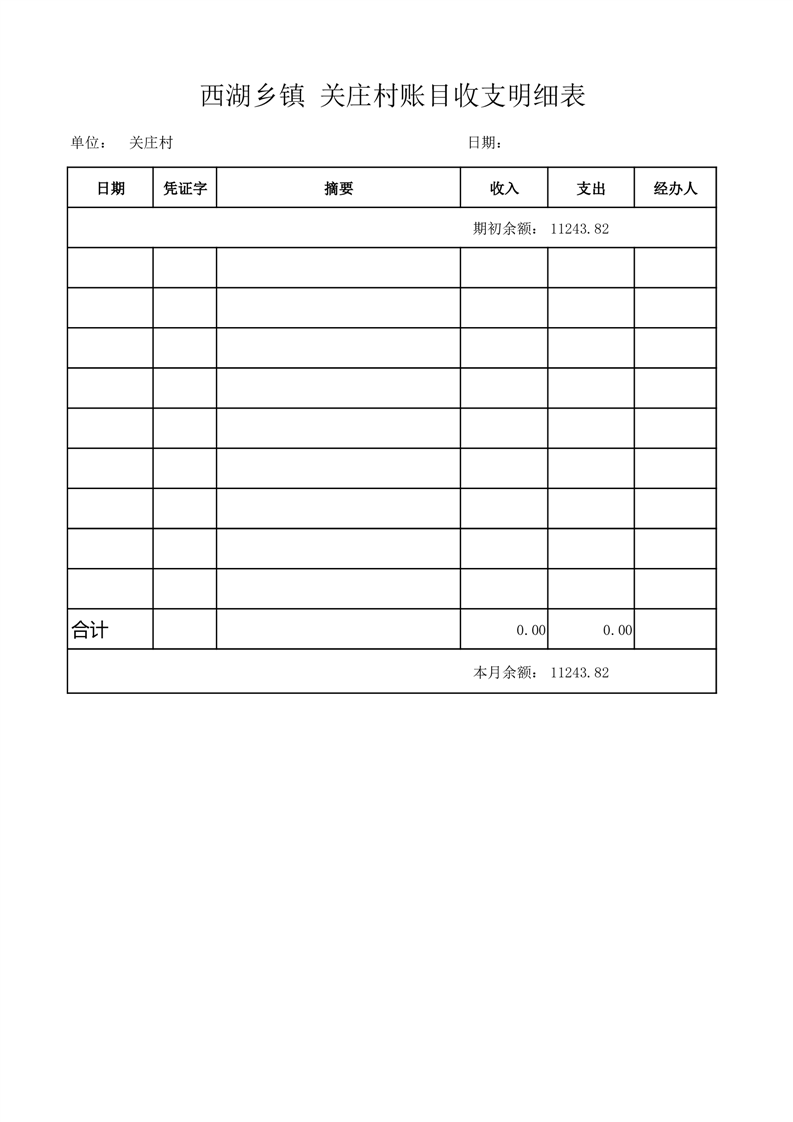 2025年10月份西湖镇关庄村账目收支情况表