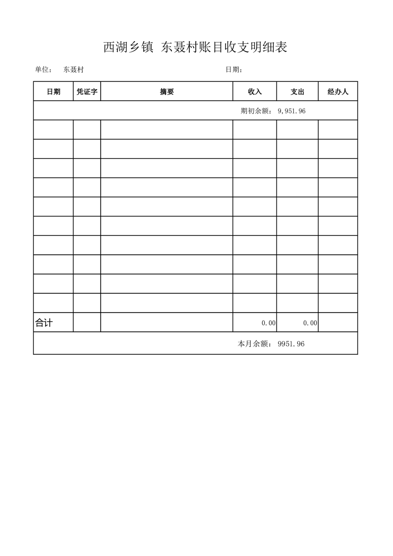 2025年10月份西湖镇东聂村账目收支情况表