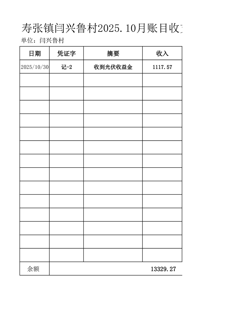 寿张镇闫兴鲁村2025.10月账目收支明细表