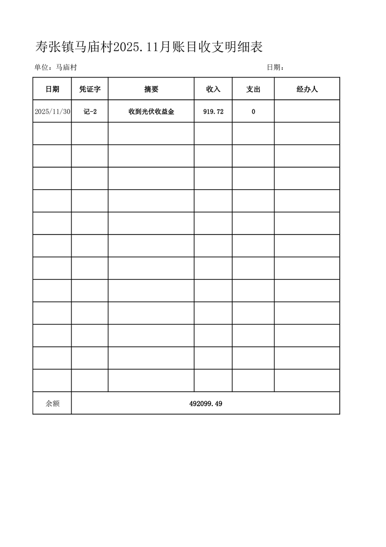 寿张镇马庙村2025.11月账目收支明细表