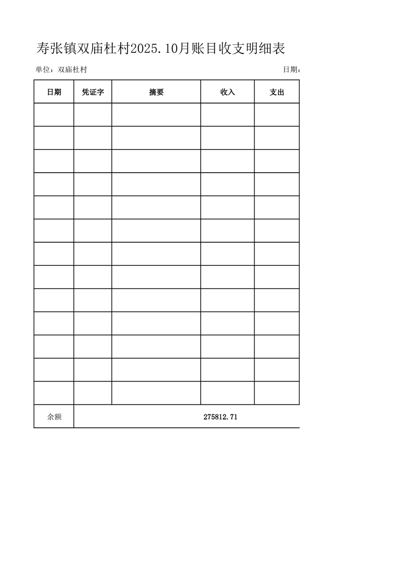 寿张镇双庙杜村2025.10月账目收支明细表