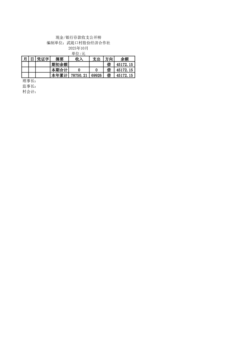 2025年10月份定水镇武堤口村账目收支情况一览表