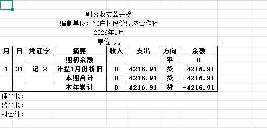 阿城镇寇庄村2026年1月份账目收支明细表