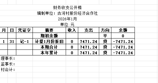 阿城镇古河村2026年1月份账目收支明细表