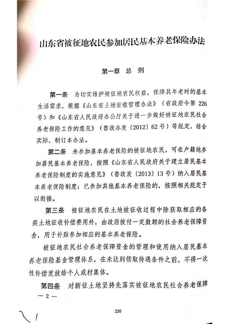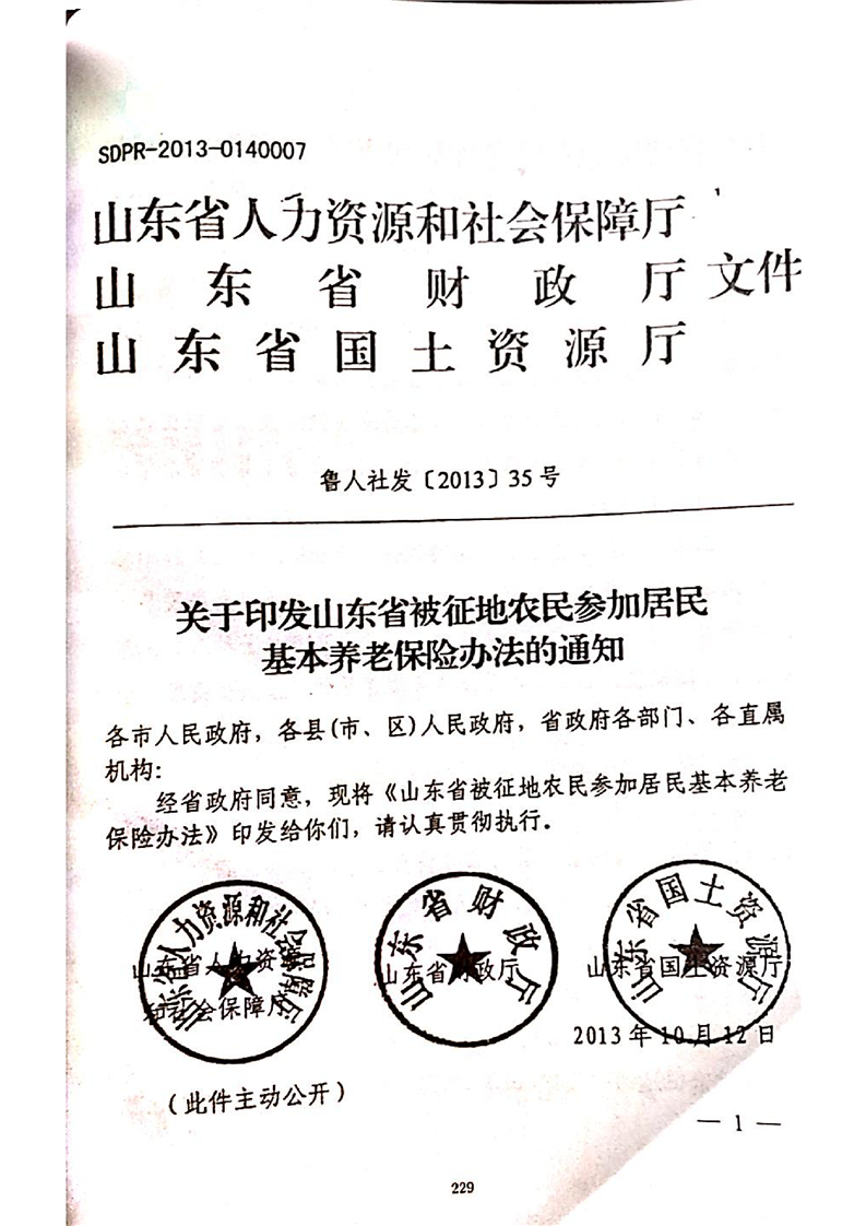 关于印发山东省被征地人员参加居民养老保险办法的通知
