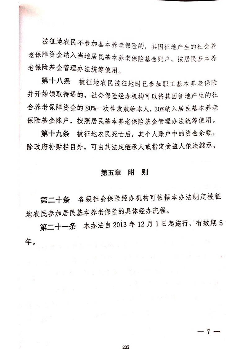 已满60周岁的征地农民,按对应年龄的支付系数,与居民基本养老保险合并领取养老金(参照执行现行职工基本养老保险个人账户养老金计发系数,70岁以上的执行70岁的支付系数).